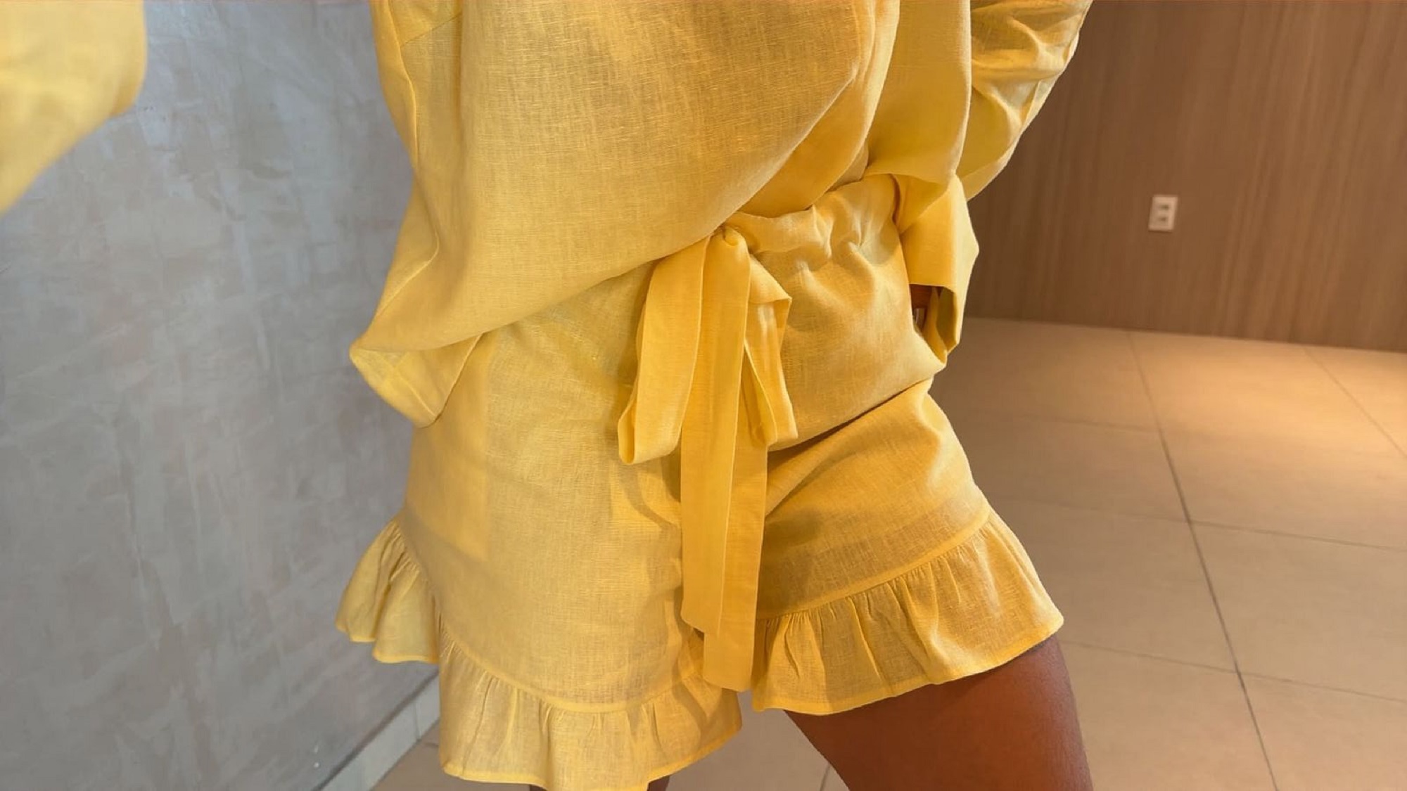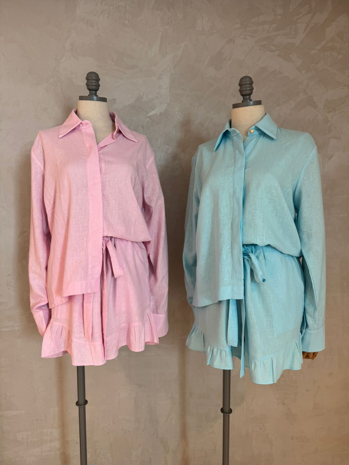 Fresco, elegante e casual, o look multifacetado que se encaixa em qualquer ocasião. Com a riqueza do linho, o detalhe perolado na gola e a delicadeza do laço na amarração, o conjunto Dandara são as peças coringas para o seu dia a dia, com quatro opções de cores e caimentos únicos!