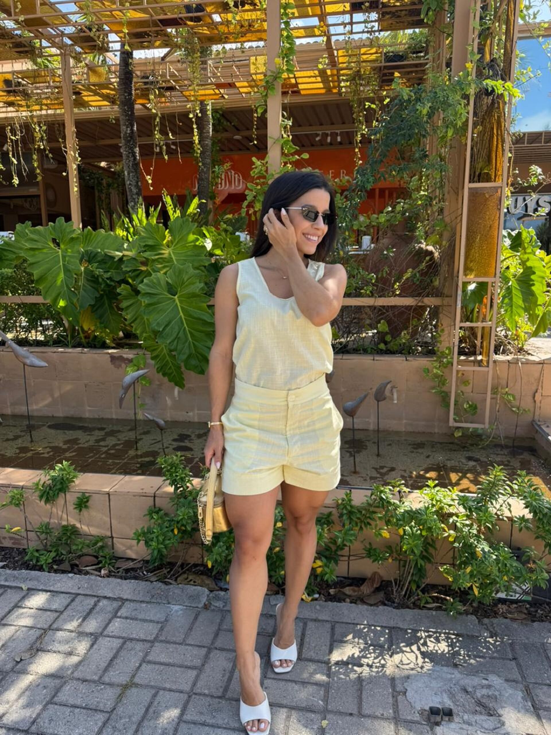 O Conjunto Yara é a escolha certa para o verão. Feito em tecido fresco e com um leque de cores disponíveis, garantindo um visual harmônico e elegante, ideal para dias ensolarados e momentos ao ar livre.