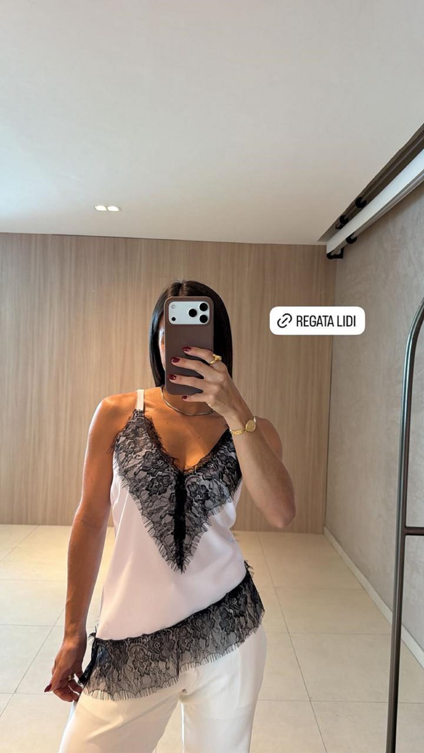 A Regata Didi foi pensada para valorizar o corpo com leveza: um decote que valoriza, renda aplicadas para dar mais sofisticação nos detalhes. Atemporal e não perde seu protagonismo ao ser usada mais uma sobreposição, combinando com tricô, blazer ou casacos.