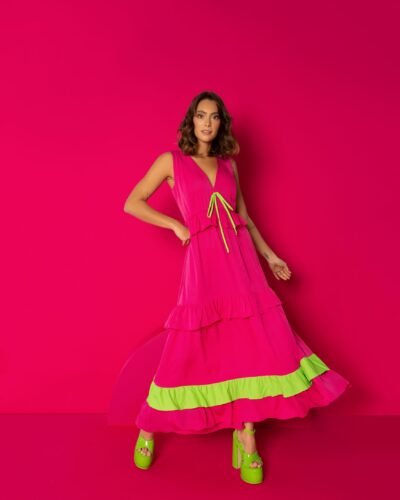 Vestido modelo tubinho, acinturado com pregas frontais e traseiras. Ombreiras estruturadas e fechamento nas costas por ziper invisivel.